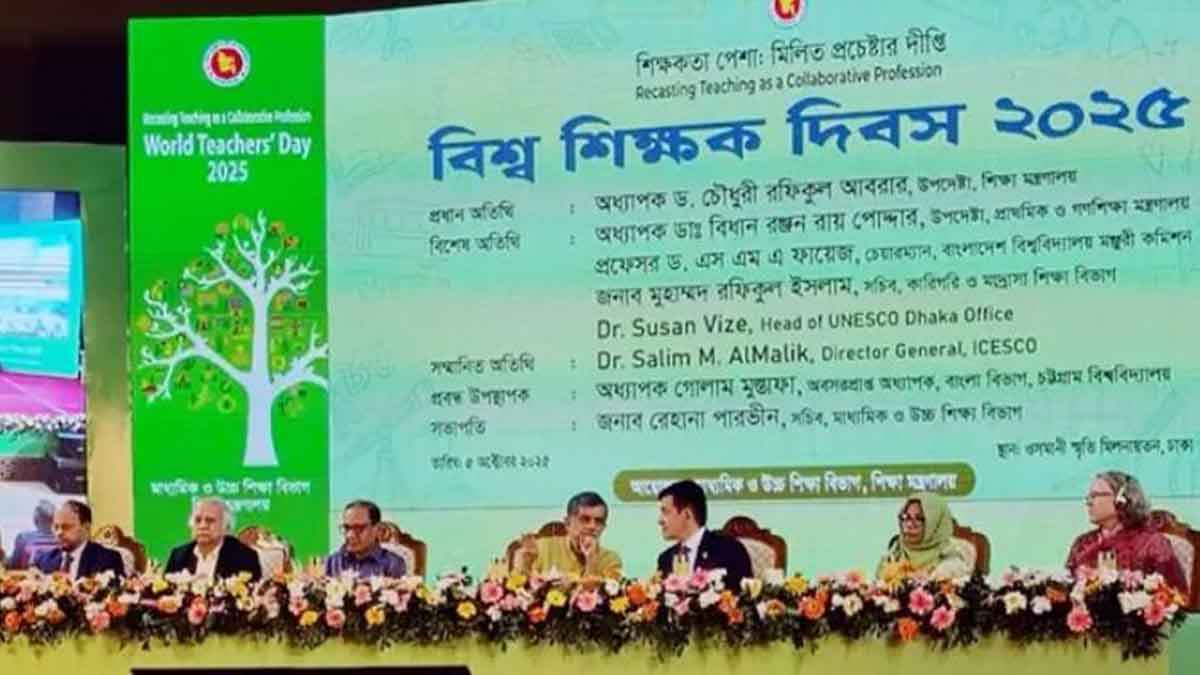 শিক্ষা উপদেষ্টা অধ্যাপক ড. চৌধুরী রফিকুল (সি আর) আবরার বলেছেন, পুঁথিগত বিদ্যার পাশাপাশি মননের বিকাশ প্রয়োজন। এখানে যুক্তিবোধের বিকাশ, সংবেদনশীলতার উপলব্ধি ও কর্মদক্ষতার অনুশীলনের ওপর গুরুত্ব দিতে হবে। রোববার (৫ অক্টোবর) রাজধানীর ওসমানী স্মৃতি মিলনায়তনে বিশ্ব শিক্ষক দিবস উপলক্ষে আয়োজিত অনুষ্ঠানে প্রধান অতিথির বক্তব্যে তিনি এসব কথা বলেন। ‘শিক্ষকতা পেশা: মিলিত প্রচেষ্টার দীপ্তি’ শীর্ষক এই অনুষ্ঠানের আয়োজন করা হয়।